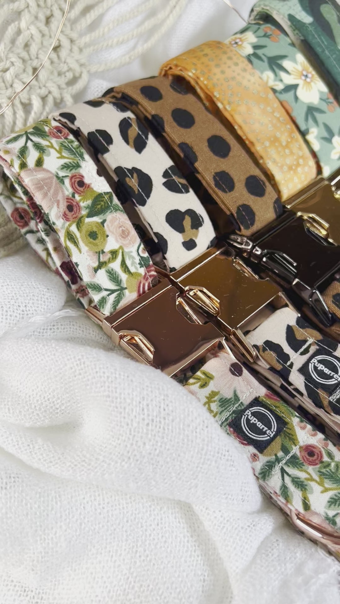 We now also offer cat collars. These are available in one size and are very adjustable to get the perfect fit for your feline friend. Cat collars are made with a plastic quick release buckle.