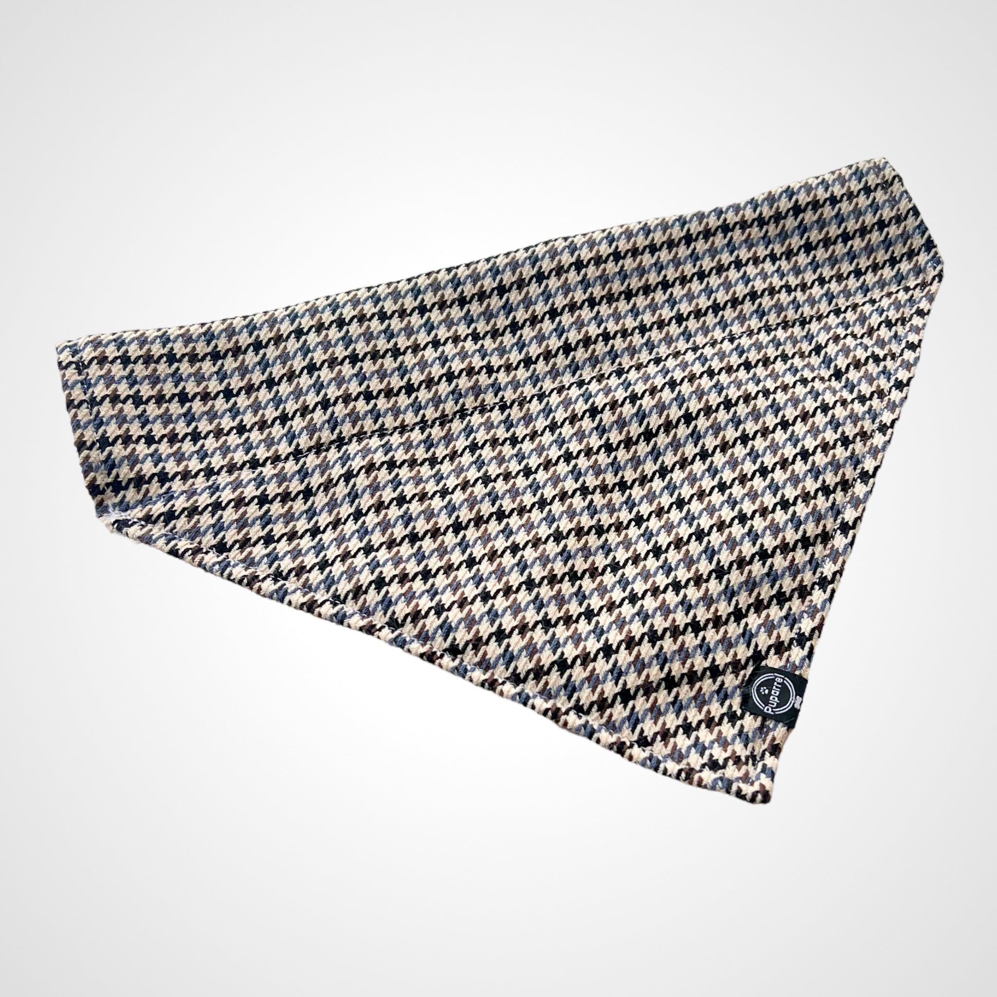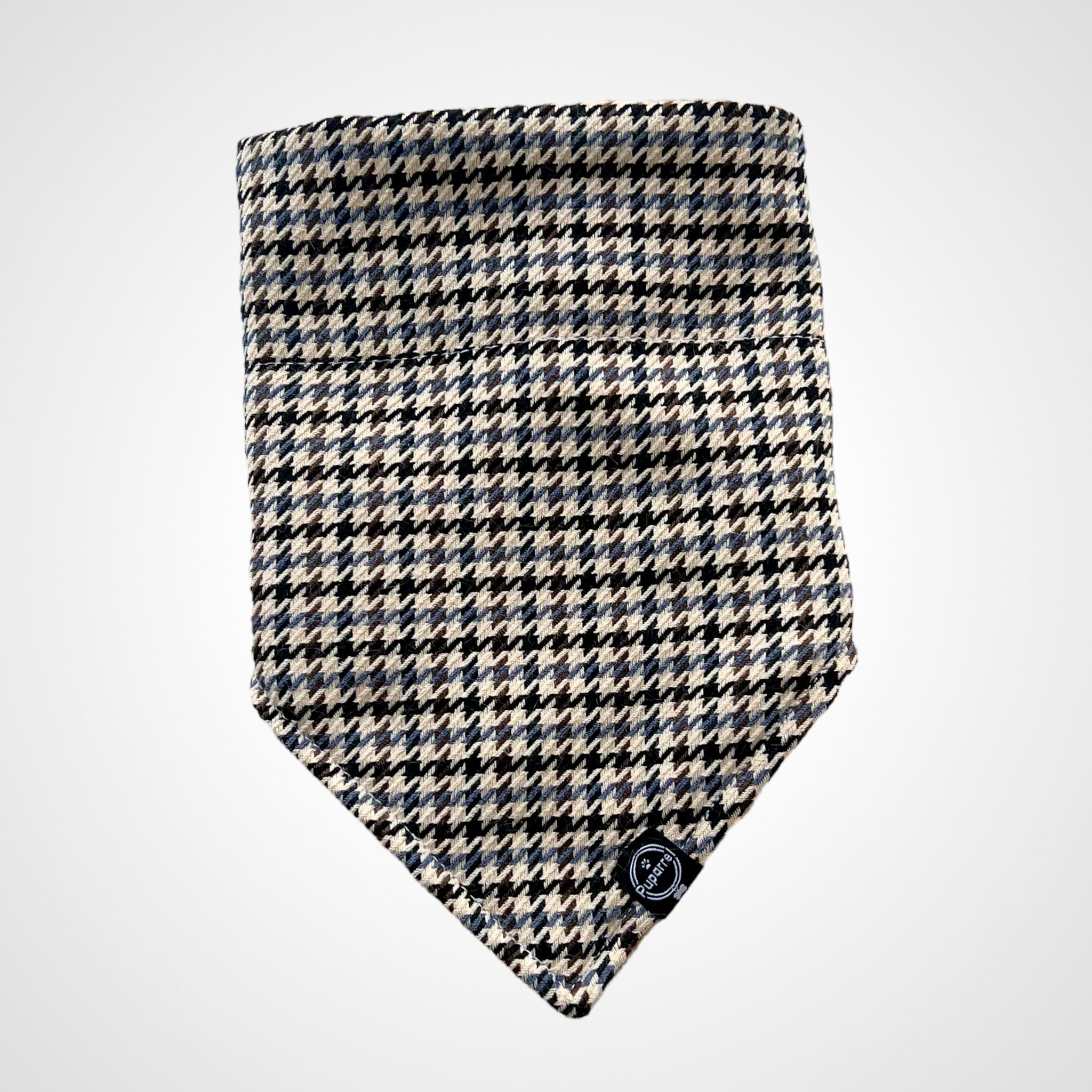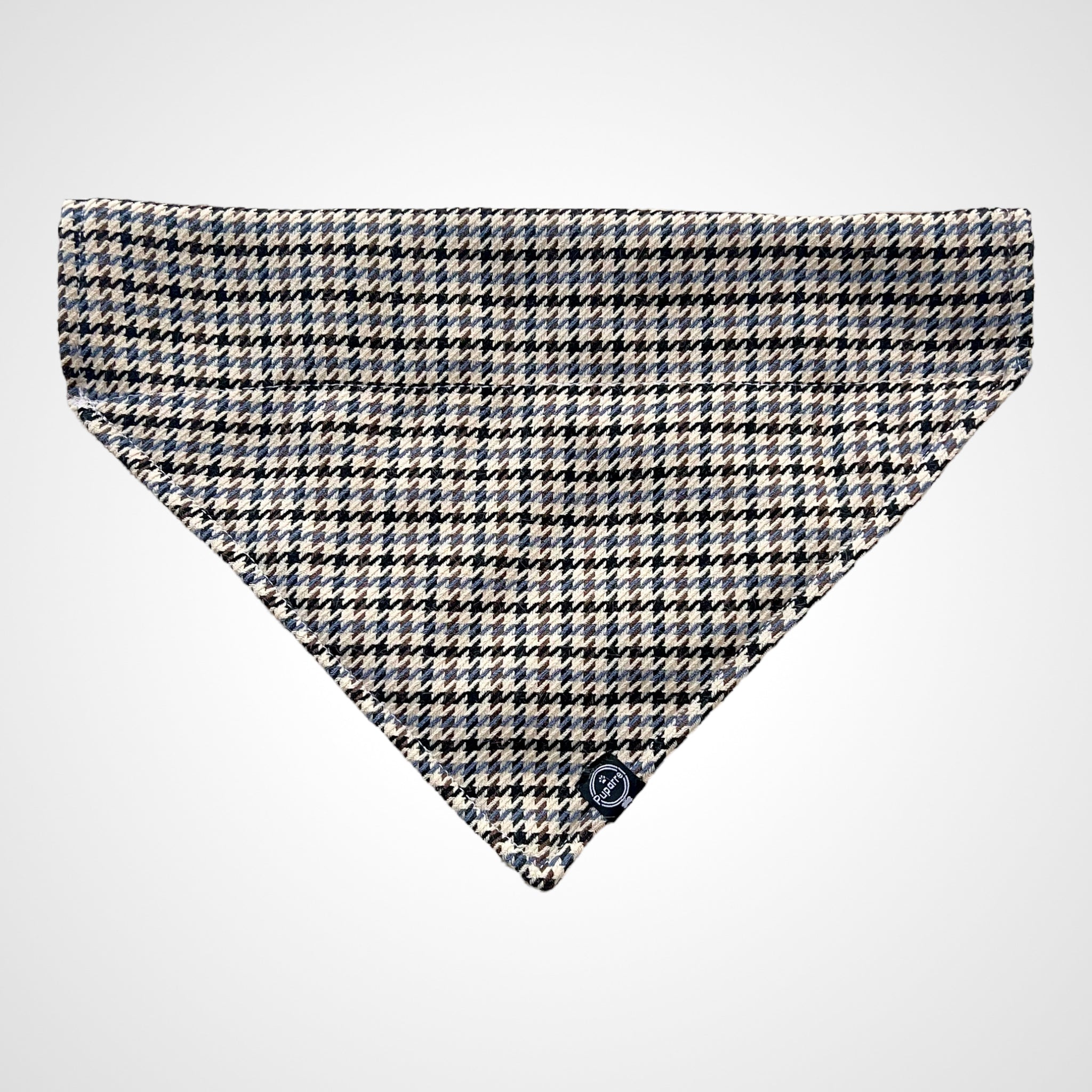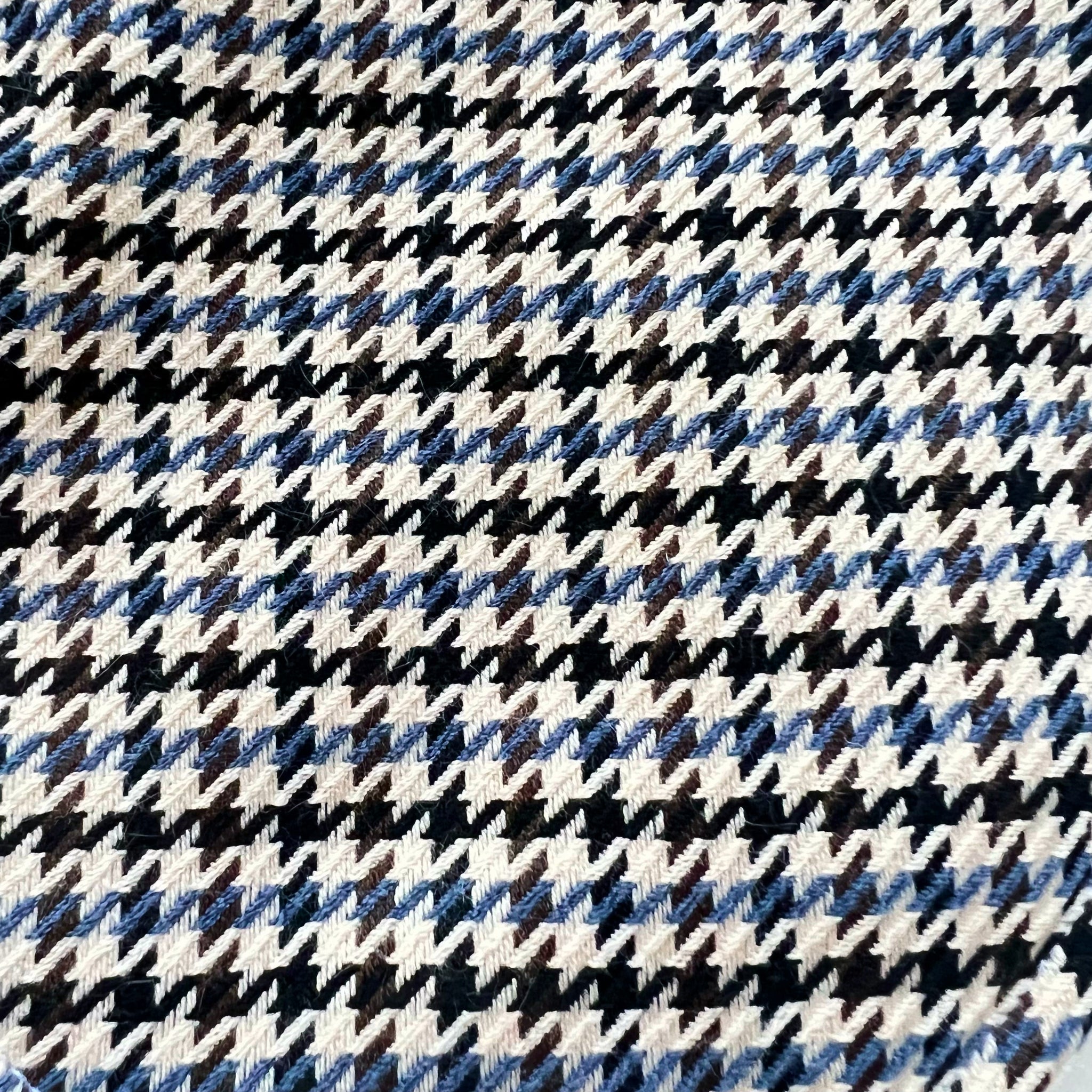 - Covered with mid blue, brown, and black houndstooth pattern