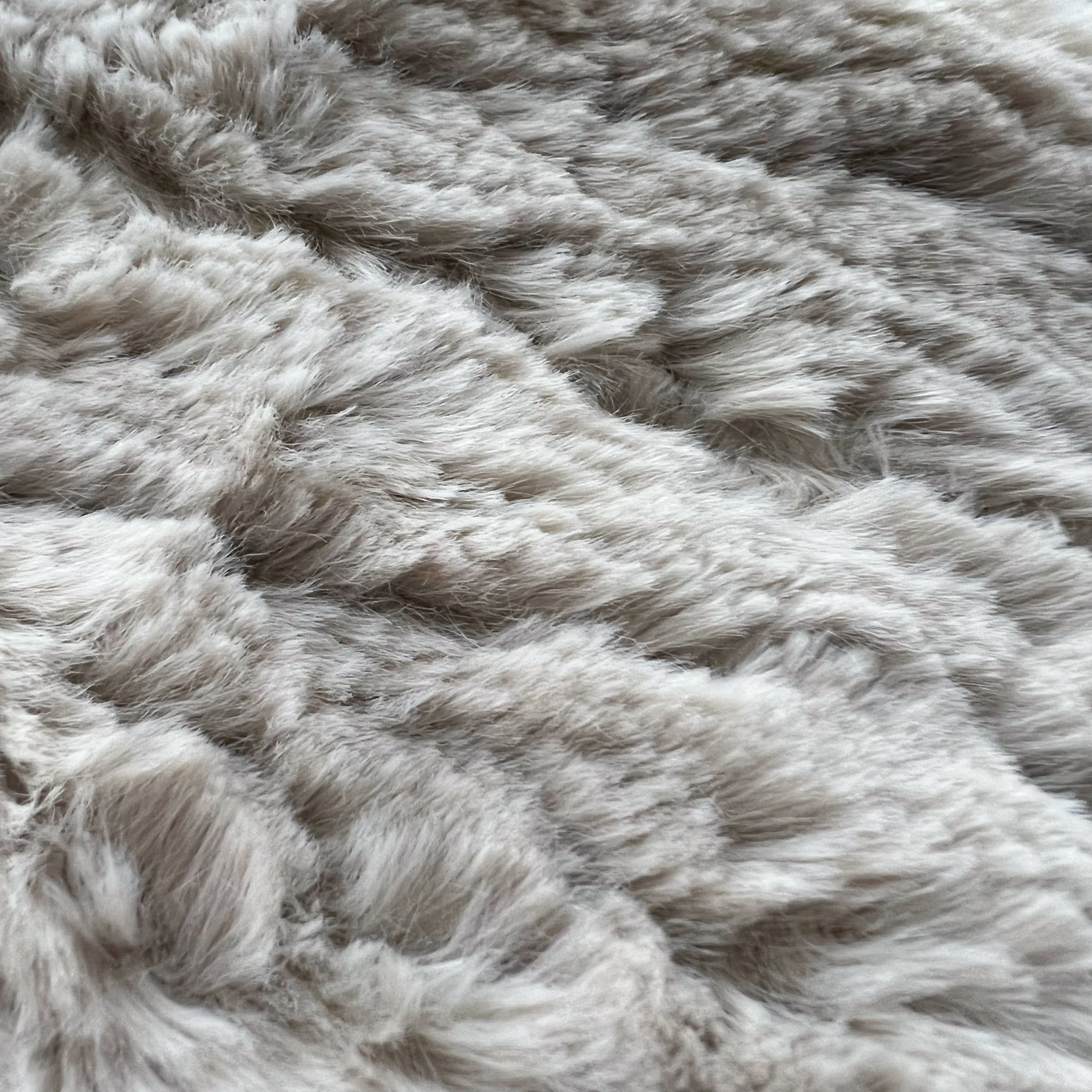 - Made of woven houndstooth fabric on front and beige colour fluffy warm fabric on back
