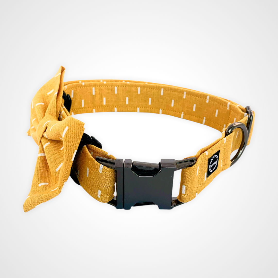 Sizing: Bows sizes correspond with collar sizing (XS/S bow will fit XS or S collar, M bow will fit M collar, L bow will fit L collar). All bows are made to order and therefore do not accept returns due to incorrect sizing.